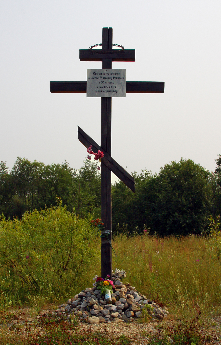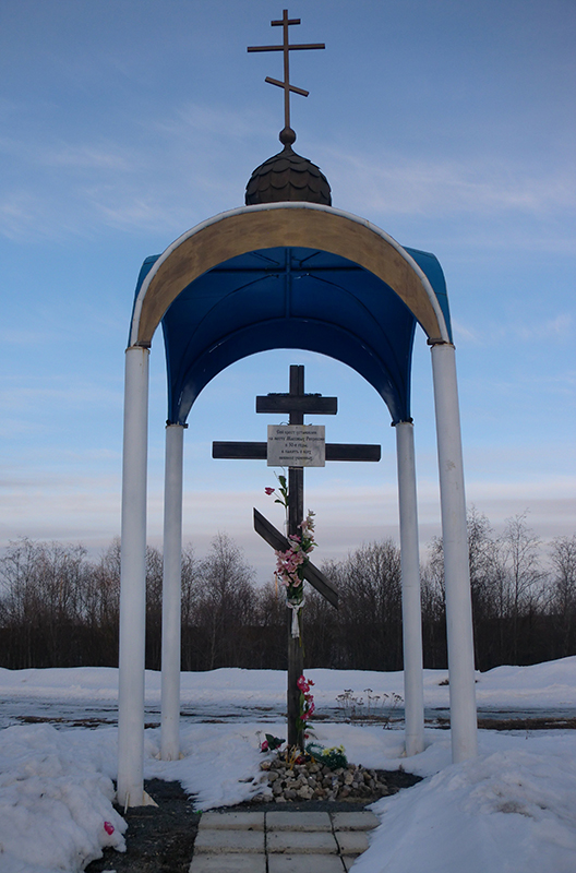 In 2001, a wooden memorial cross was erected with a text on its headboard: “This cross, erected in a place of mass repression in the 1930s, is dedicated to the memory of the innocent slain”. The cross was consecrated by Bishop Pitirim of Syktyvkar and Vorkuta. In October 2011, a symbolic cupola was built over the cross. In 2013, a memorial to the wartime warriors of the Komi-Zyransk Region was placed next to the chapel.